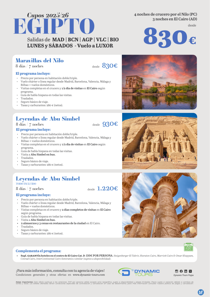 EGIPTO 【Salida los lunes y sabados】『4cru+3cai』(✈ Madrid, Barcelona, Valencia, Málaga y Bilbao) desde 830€